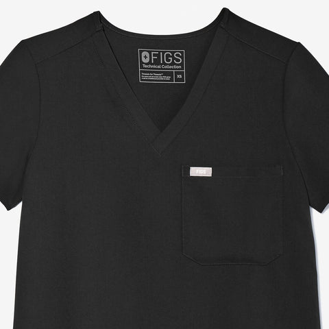 Simple and clean, but far from basic. The Catarina has a flattering V-neck, single chest pocket and slim (but not too slim) fit — plus it features our proprietary FIONx fabric. Ta-da.