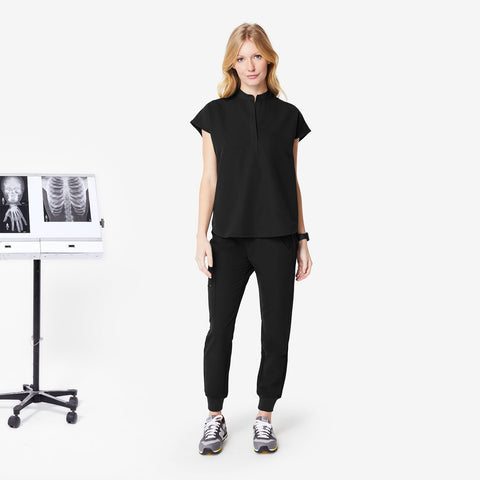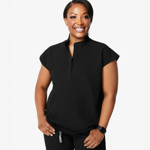 women's Black Rafaela - Mandarin Collar Scrub Top