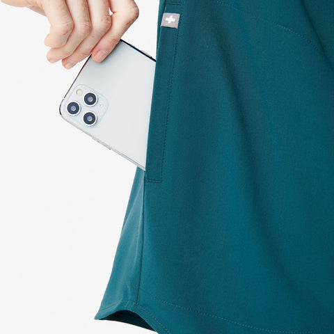 Modern design details AND super functional features?! Whoa. The Rafaela has a mandarin collar and shirttail hem, along with multiple pockets, an oversized fit that allows for easy movement and our proprietary FIONx fabric.