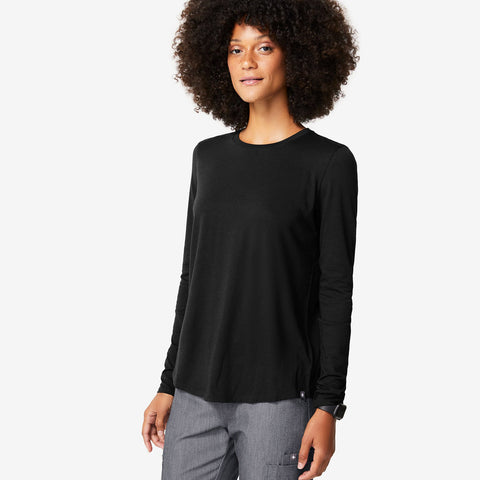 Long days, meet your match. Our SuperSoft long sleeve underscrub is made from the finest Modal and Pima Cotton blend to keep you cozy. With a relaxed fit and flattering drape, it's perfect for layering or wearing solo.