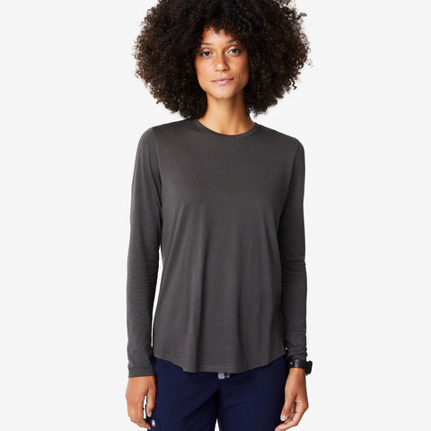 Long days, meet your match. Our SuperSoft long sleeve underscrub is made from the finest Modal and Pima Cotton blend to keep you cozy. With a relaxed fit and flattering drape, it's perfect for layering or wearing solo.
